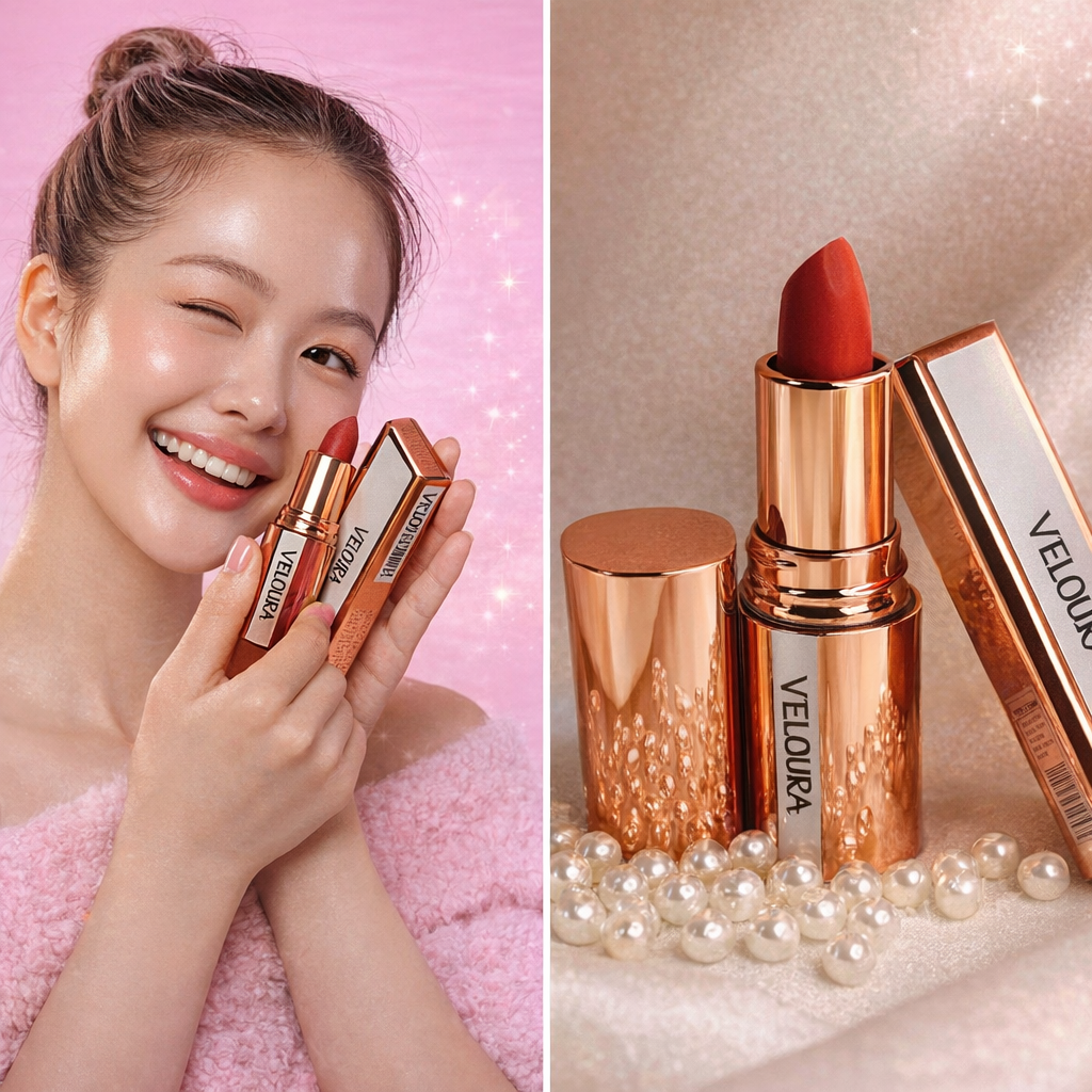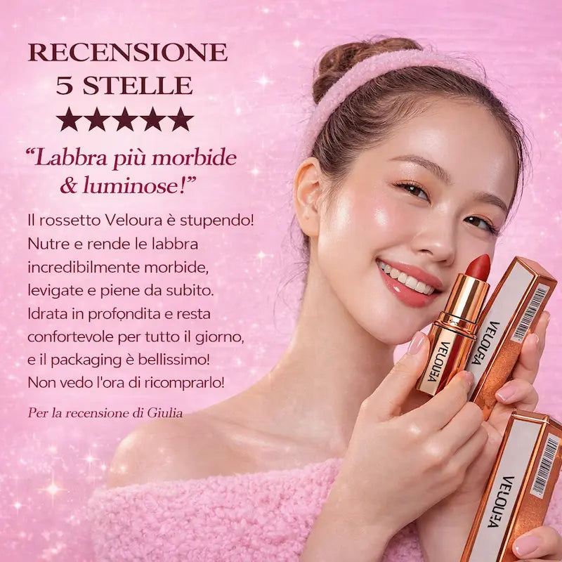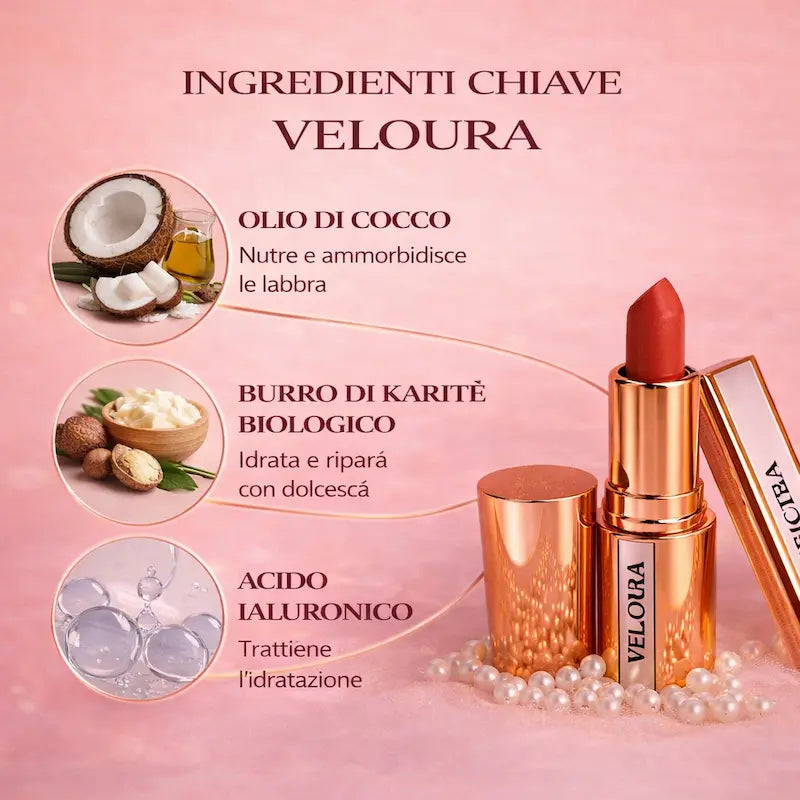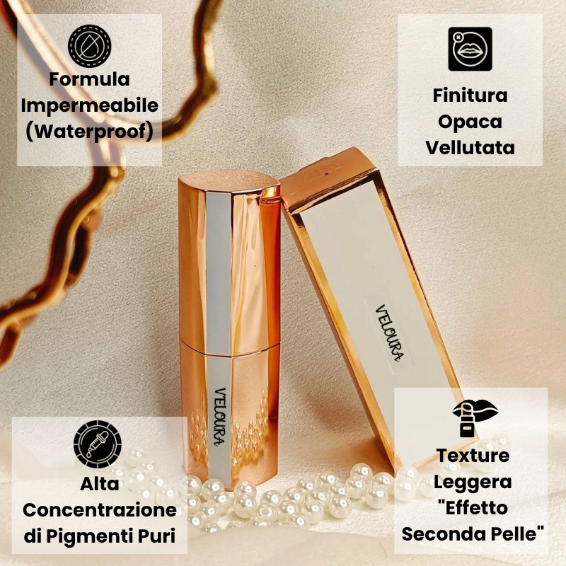 Rossetto a Lunga Durata Veloura: Finitura Opaca e Impermeabile