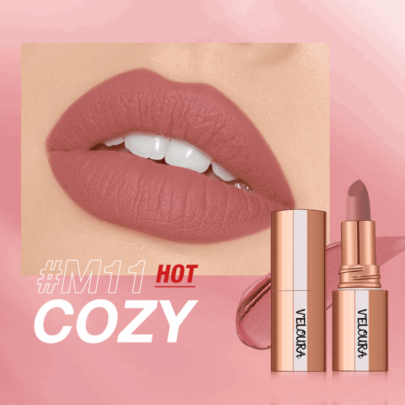 Il nostro rossetto Veloura è formulato per essere piacevole da indossare. Possiede un leggero odore sottile e gradevole che svanisce rapidamente dopo l'applicazione. Non contiene sapori forti, garantendo un'esperienza d'uso neutra e confortevole durante tutta la giornata.