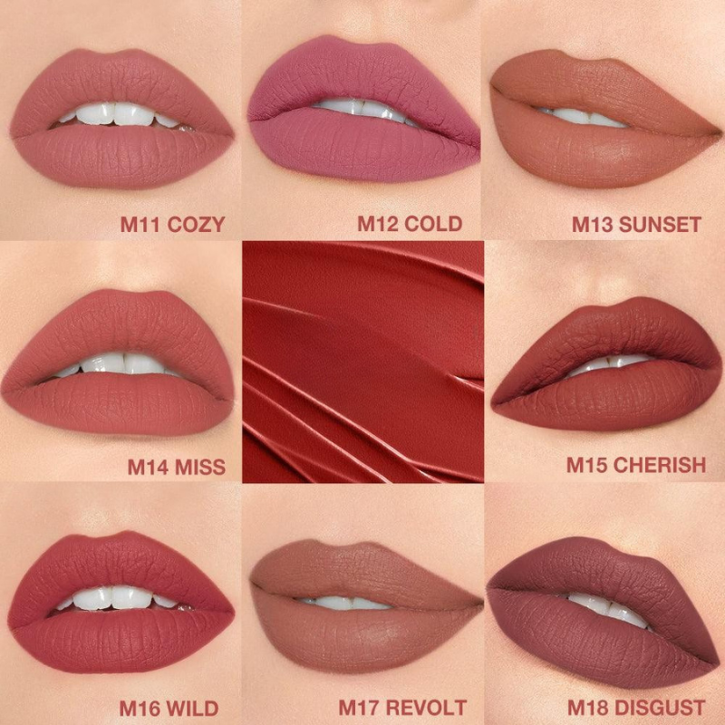 Le consigliamo di guardare i nostri swatch su diverse carnagioni (disponibili nella galleria fotografica). Le tonalità M11 (Cozy) e M14 (Miss) sono ottimi nude versatili, mentre M16 (Wild) e M15 (Cherish) offrono più intensità. Ogni colore è progettato per una ricca pigmentazione.